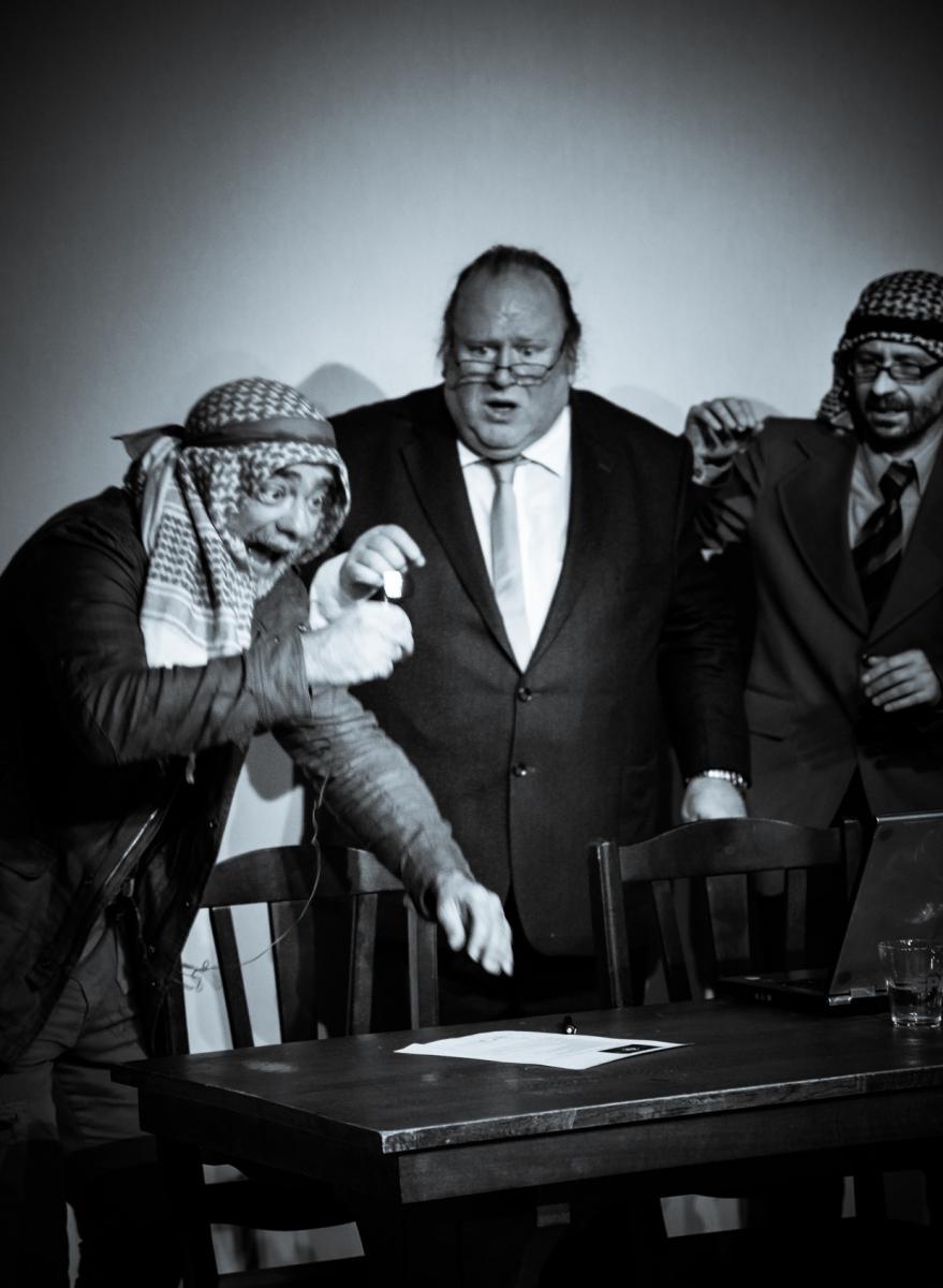 Het wordt een schaakspel met politieke clichés, die inslaan als granaten, en religieuze symbolen, die als raketten op mekaar worden afgevuurd. Clichés, leugens en halve waarheden schieten als firecrackers vrolijk in het rond. Iedereen moet zich bloot geven en wordt geconfronteerd met de eigen onmense-lijkheid, wat explodeert tot een hilarisch slagveld van het eigen groot gelijk.